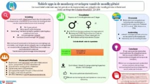 Er is een kwantitatief, cross-sectioneel onderzoek uitgevoerd naar het gebruik van mHealth applicaties door mondhygiënisten. De survey bevatte onder andere vragen die inzicht gaven over in hoeverre en welke mobiele apps gebruikt worden door de onderzochten mondhygiënisten en wat hun attitude is tegenover de implementatie en gebruik hiervan.