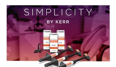 Het SimpliShade Universeel Composiet Systeem van Kerr is voorzien van Adaptive Response Technologie (ART) en vereenvoudigt de kleurselectie van 16 VITA tinten tot slechts 3 tinten: Light, Medium en Dark.