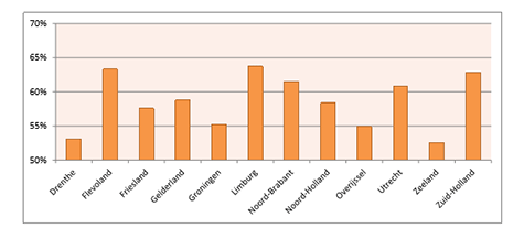 De gegevens zijn per provincie in kaart gebracht. In Limburg is het percentage praktijken dat nieuwe patiënten aanneemt het hoogst met 64%.