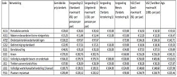 De gemiddelde prijs is de gemiddelde prijs van alle tandartspraktijken samen per begin april 2012. Per verzekeraar is de vergoeding weergegeven bij een aanvullende verzekering.
